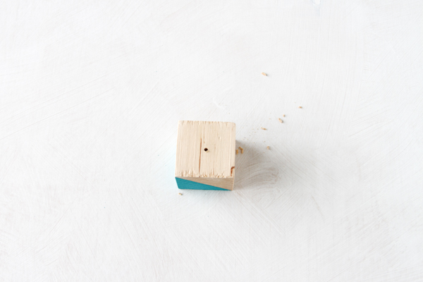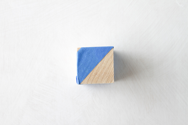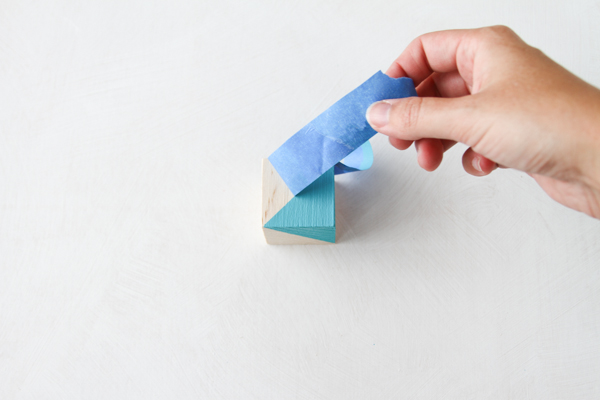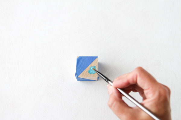 Begin painting the uncovered sections of each wood block and let the paint dry completely.